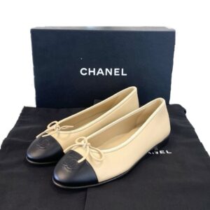 CHANEL TWO TONE BALLET FLATS BEIGE BLACK 36
