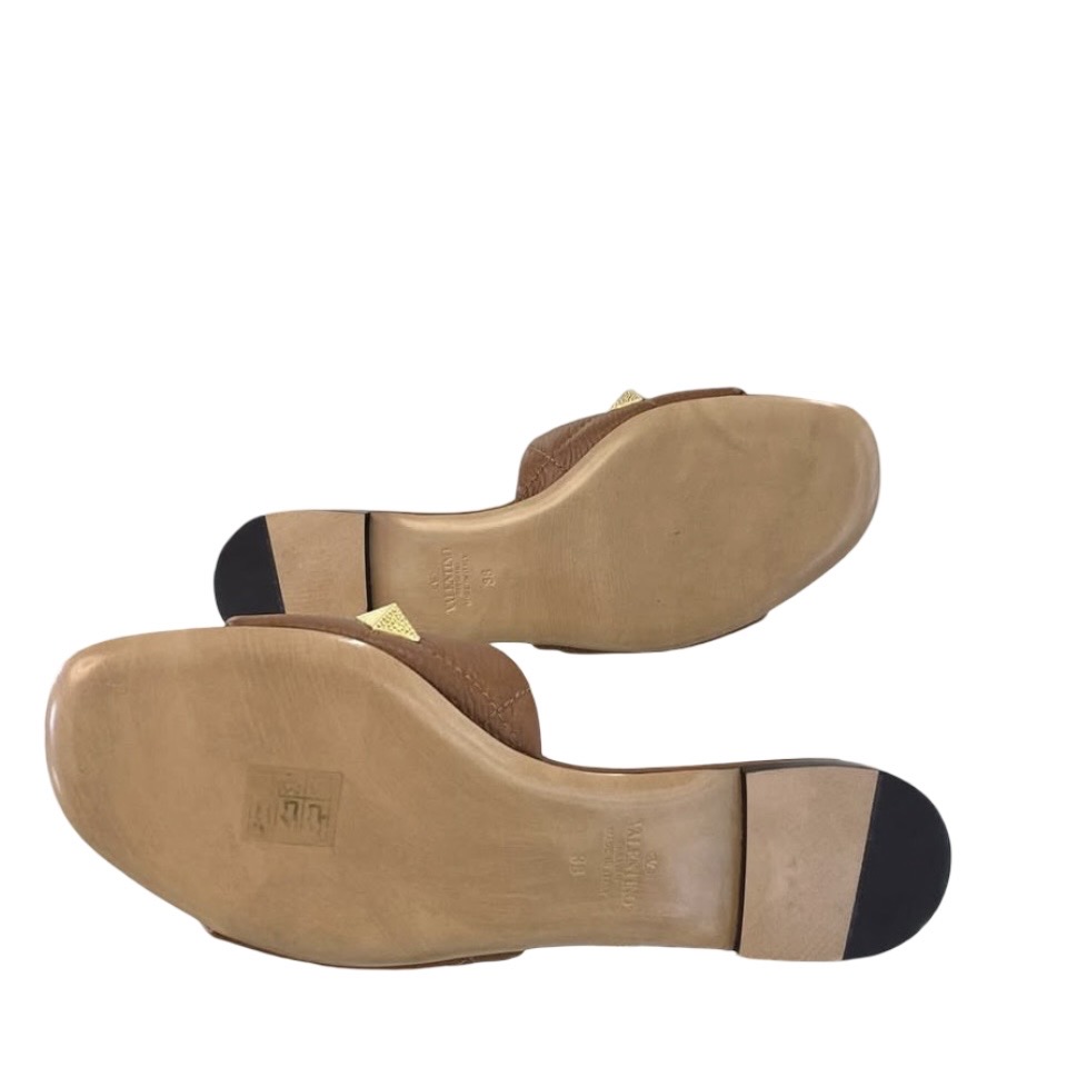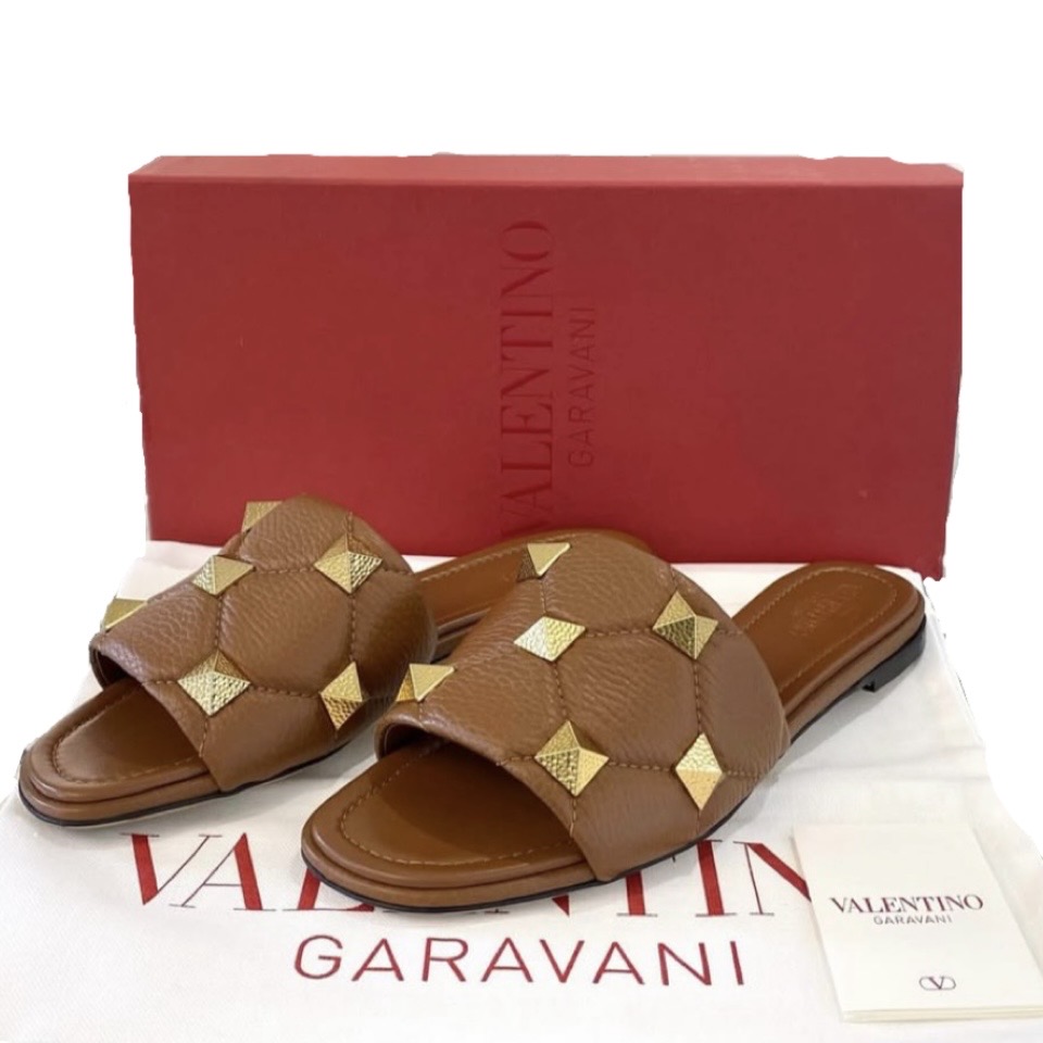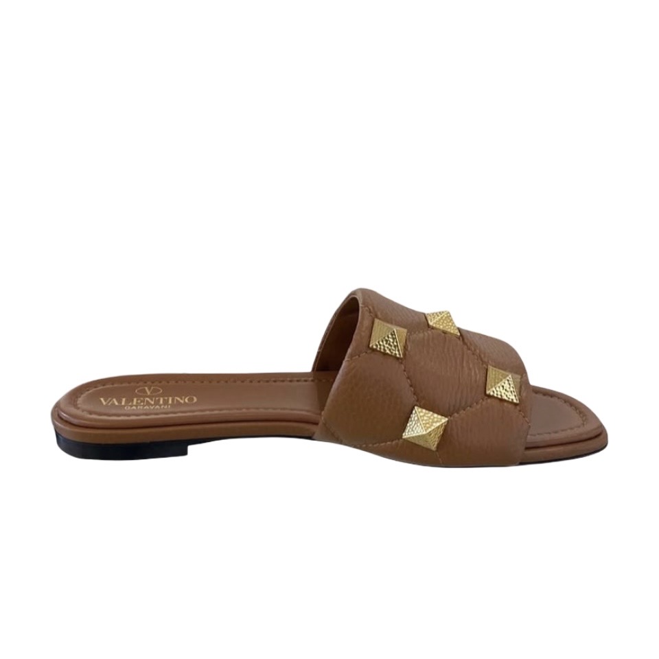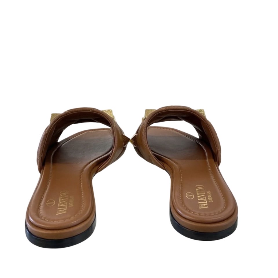 BNEW VALENTINO ROMAN STUD SLIDE SANDALS BROWN 38