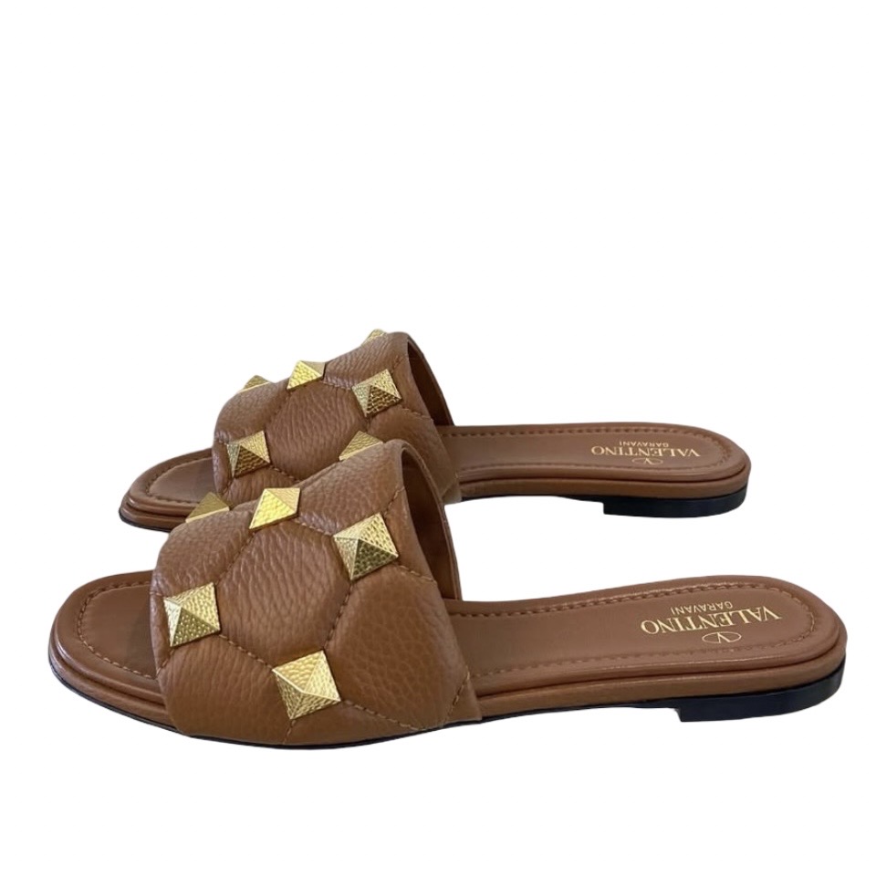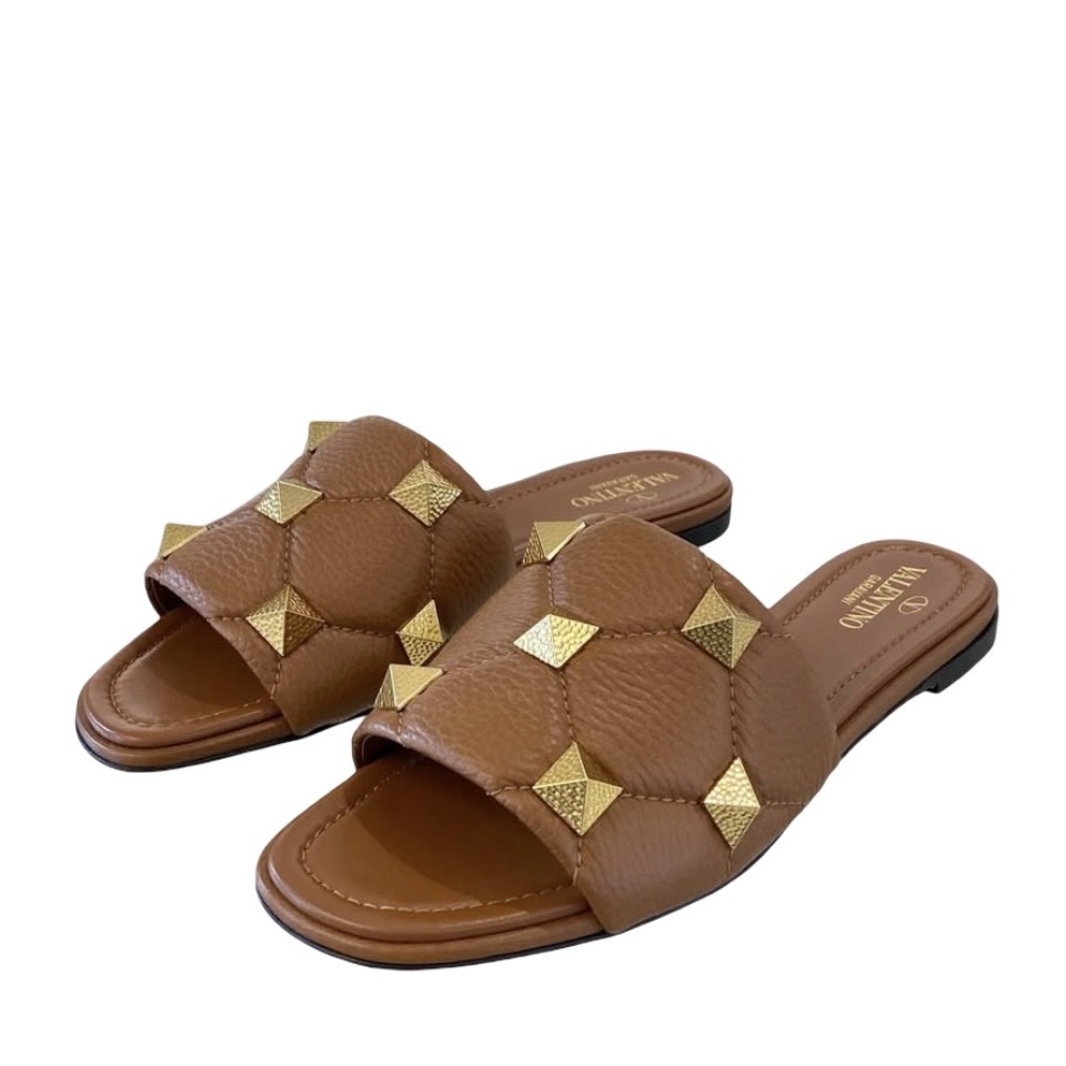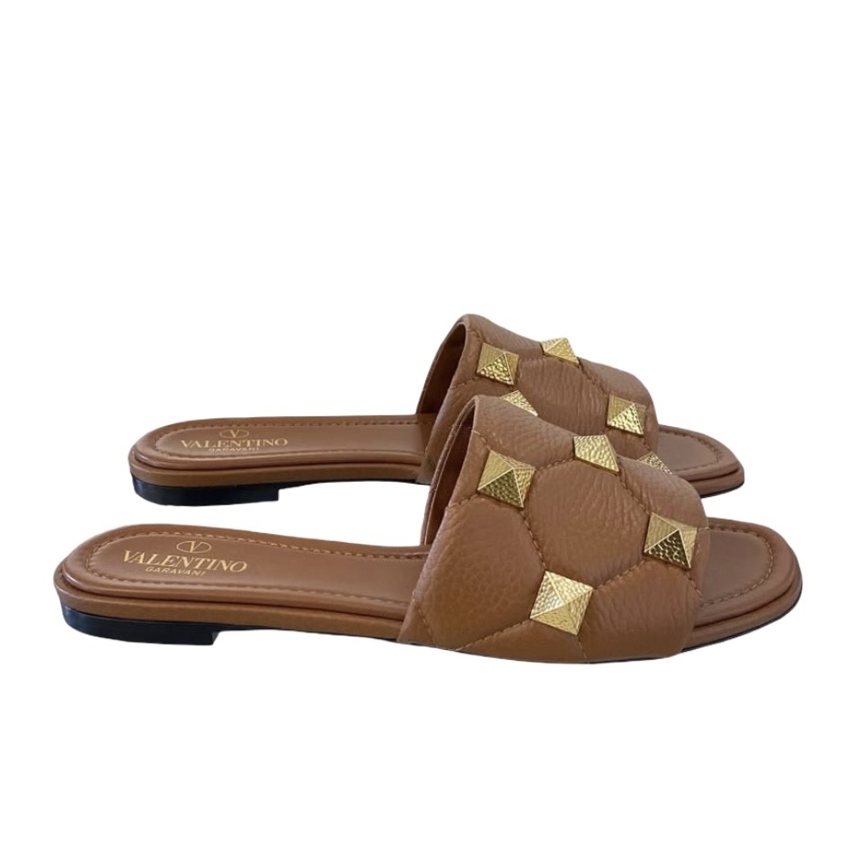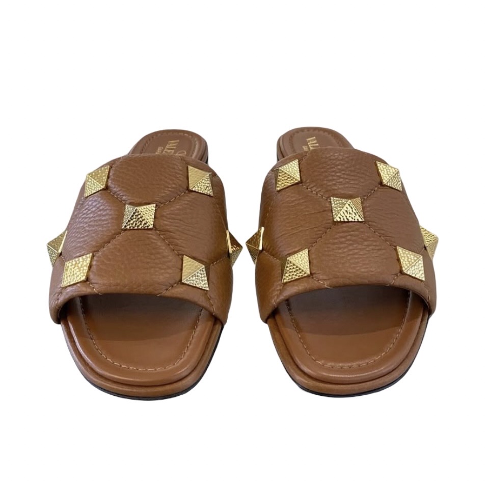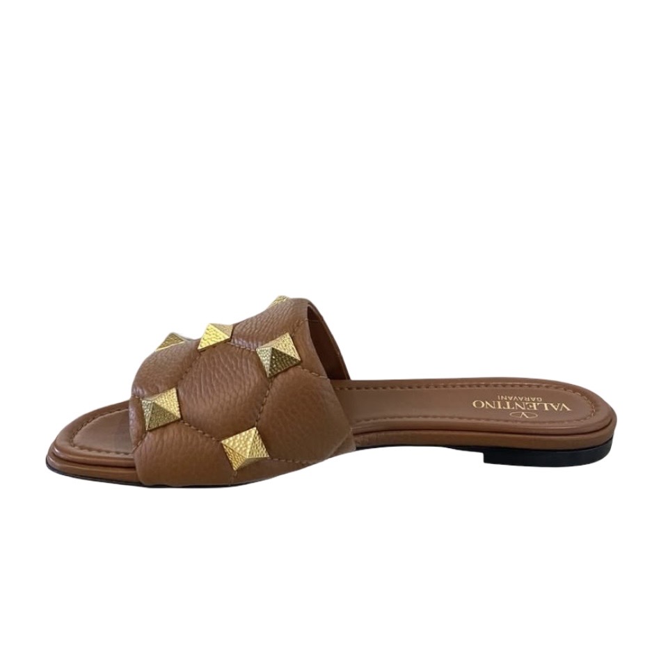 BNEW VALENTINO ROMAN STUD SLIDE SANDALS BROWN 38